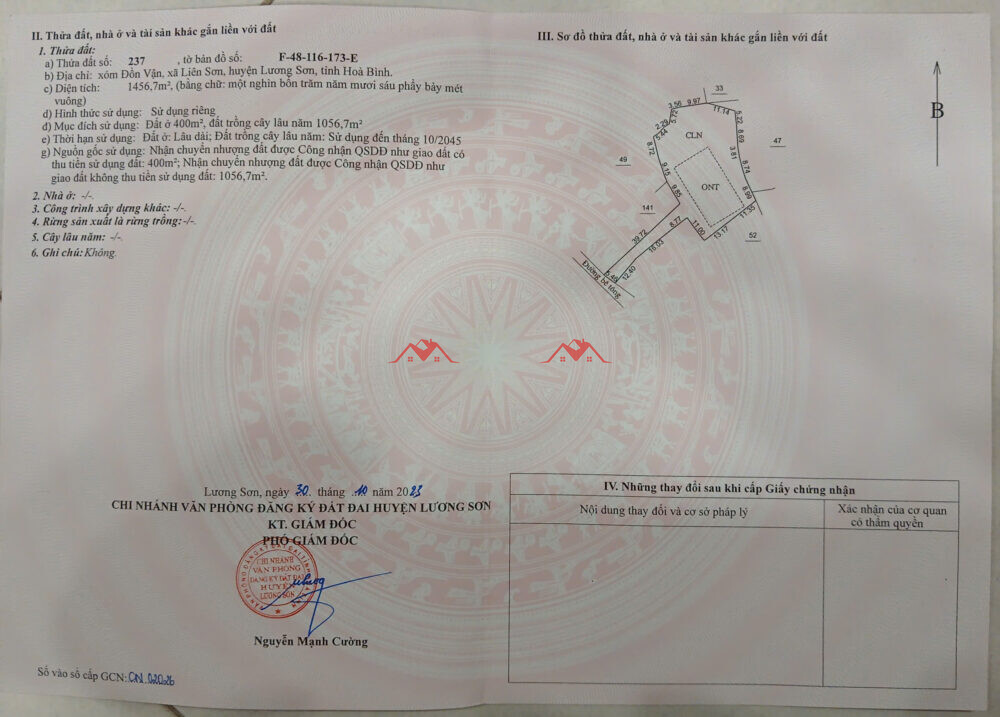 – Chính Chủ em cần bán lô đất F0, diện tích 1456.7m, trong đó có 400 đất ở, còn lại là đất vườn