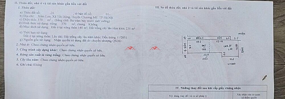 370m Xóm Leo – Tốt Động – Chương Mỹ – Hà Nội
