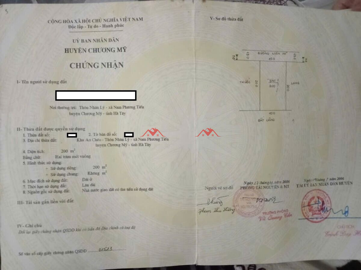 Bán nhà 200m – Nhân Lý – Nam Phương Tiến – Chương Mỹ – Hà Nội