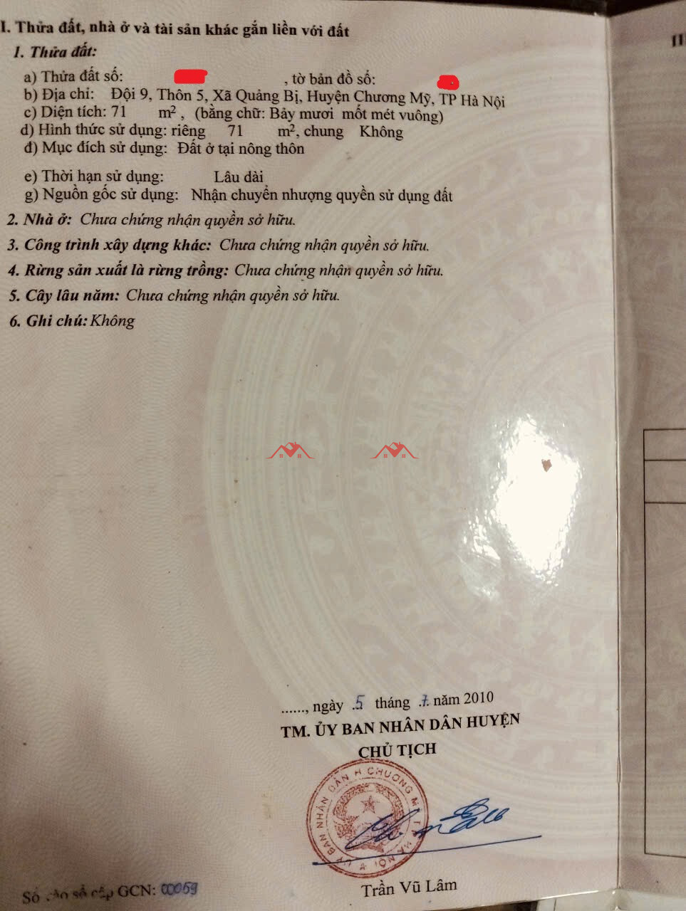 Đất 71m & 72m thôn 5 – Xã Quảng Bị – Chương Mỹ