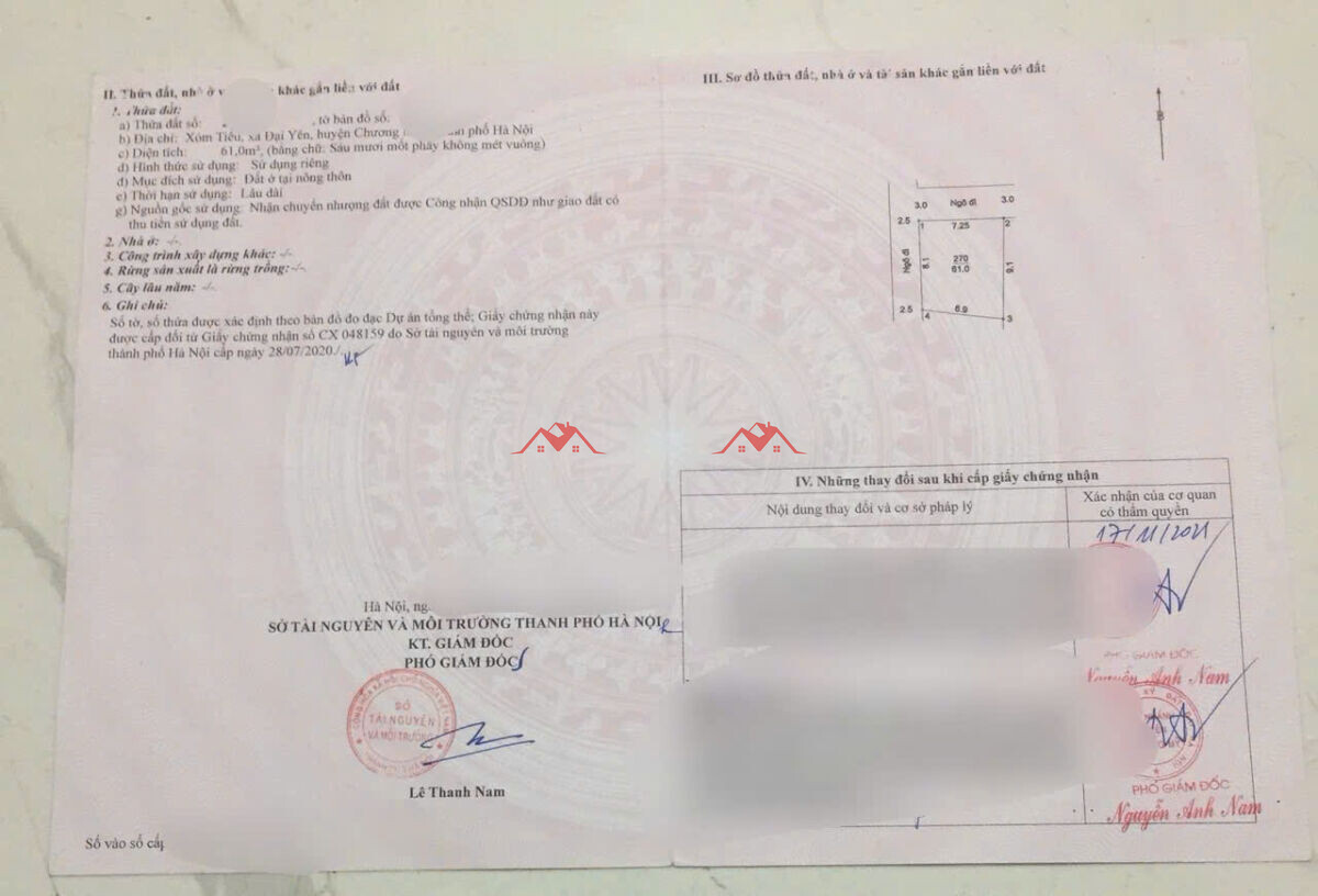 Lô góc 61m Xóm Tiêu – Đại Yên – Chương Mỹ – Hà Nội