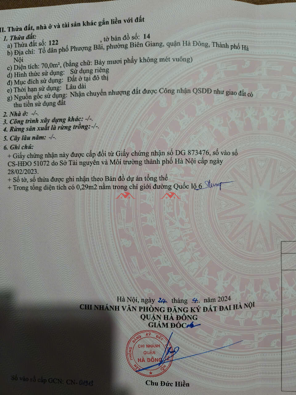 | Pháp lý: | Đã có sổ |